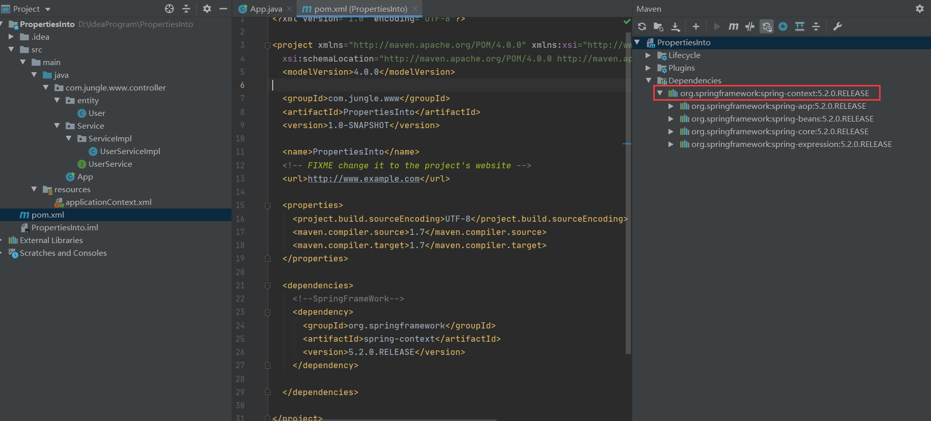既然使用Spring框架,就应该导入Spring的东西,在eclipse是导入jar包,在idea是导入maven依赖方式进行的,需要导入的依赖如下: